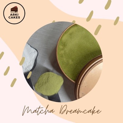 A delicious matcha moist cake covered with matcha ganache and matcha powder dust on top
