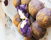 Yummy ube pandesal with a surprise cream cheese filling inside.
